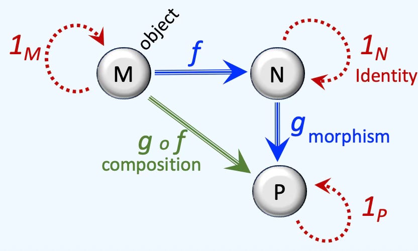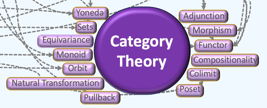 A category is a system of related mathematical objects with maps that bind them together. Example of an object is a group or topological space while a map can be a morphism [ref 39]. Interestingly enough, a category is also an object. Set, Group, Ring and Toph are the most common categories. Category theory is intimately linked to algebraic topology described in a previous section [ref 40]. Categories without maps are known as discrete categories.