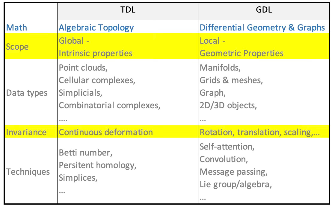 ✅ TDL is a subset of Geometric Deep Learning and extends traditional machine learning with shape analysis and extraction of topological features