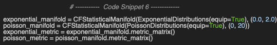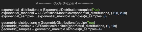 Let’s now put the current implementation of our CFStatisticalManifold class to use, as shown in Code snippet 4.