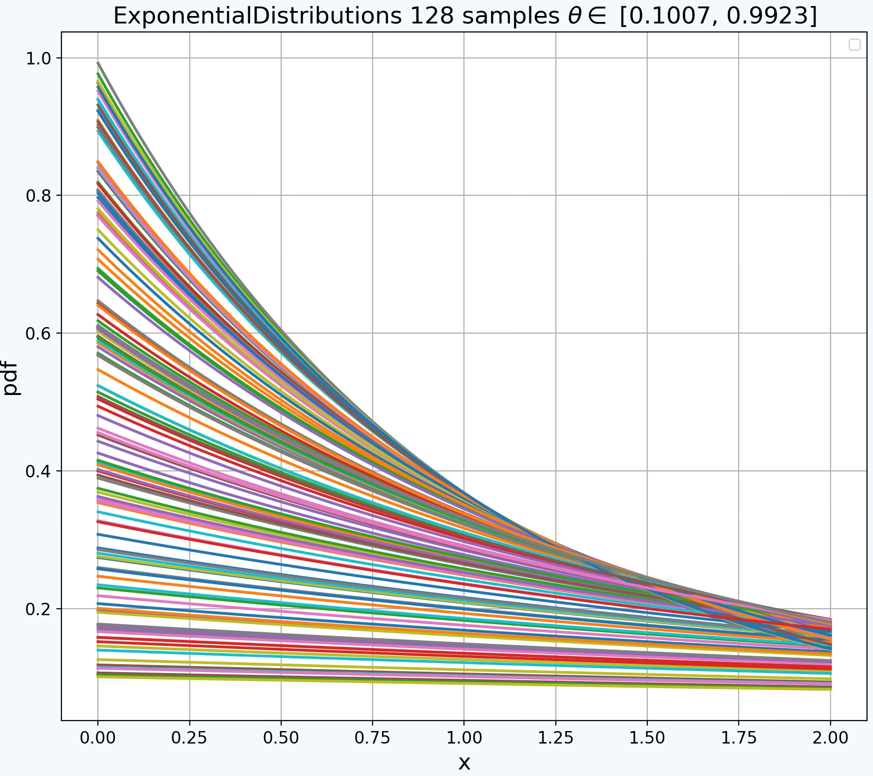 Fig. 2 Family of Exponential Distributions with random samples of the natural parameter θ
