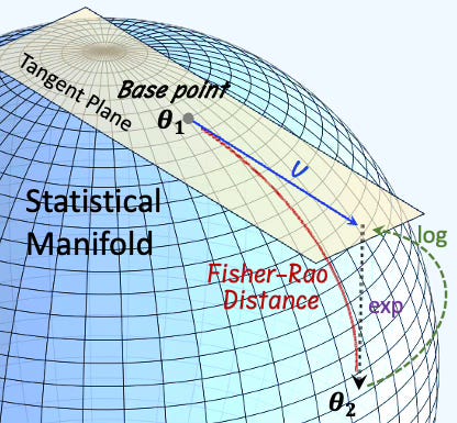 📌 This article explores key components of Fisher-Riemannian manifolds, including geodesics, as well as the exponential and logarithmic maps. A subsequent article will delve into applying the Fisher-Rao information metric to compute geodesic distances and inner products.