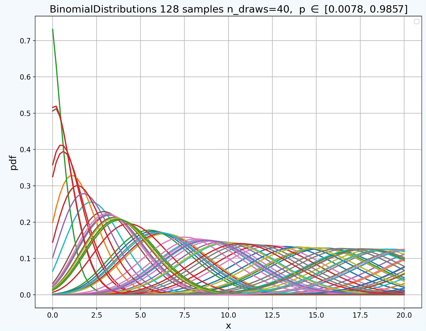 Fig. 5 Family of Binomial Distributions with random samples of probability of success p