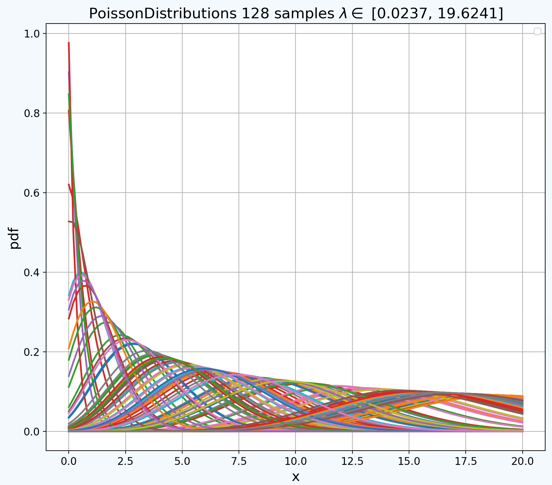 Fig. 4 Family of Poisson Distributions with random samples of the rate parameter λ