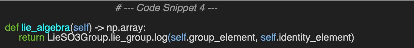 First let’s implement the computation of an algebra element from an existing SO3 group element.