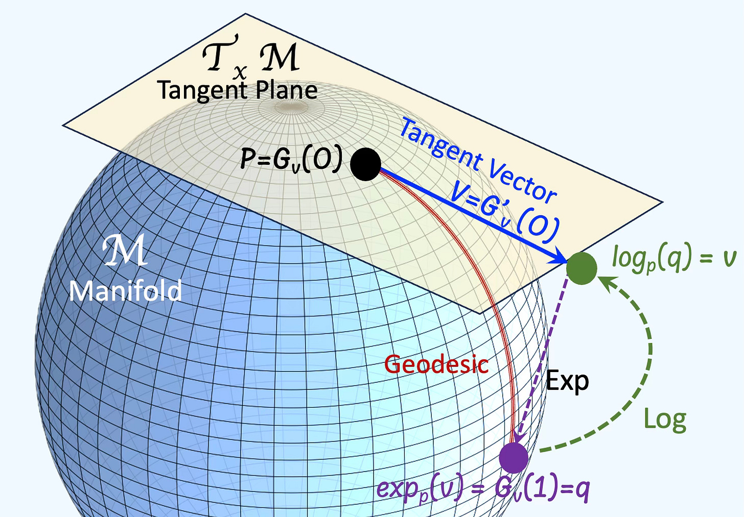 Fig. 1 Manifold with tangent space and exponential/logarithm maps