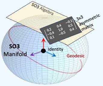 Fig. 2 Visualization of SO3 Lie groups and its algebra of 3x3 skewed asymmetric matrices