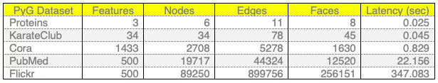 Table 2. Latency for generation of simplicial elements from some graph datasets bundled with PyTorch Geometric library