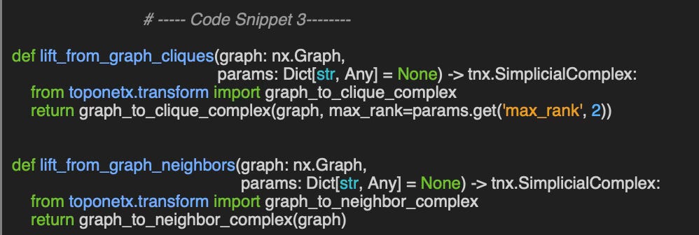 Let’s wrap the process of lifting (or converting) a graph into a Simplicial in a class, GraphToSimplicialComplex.